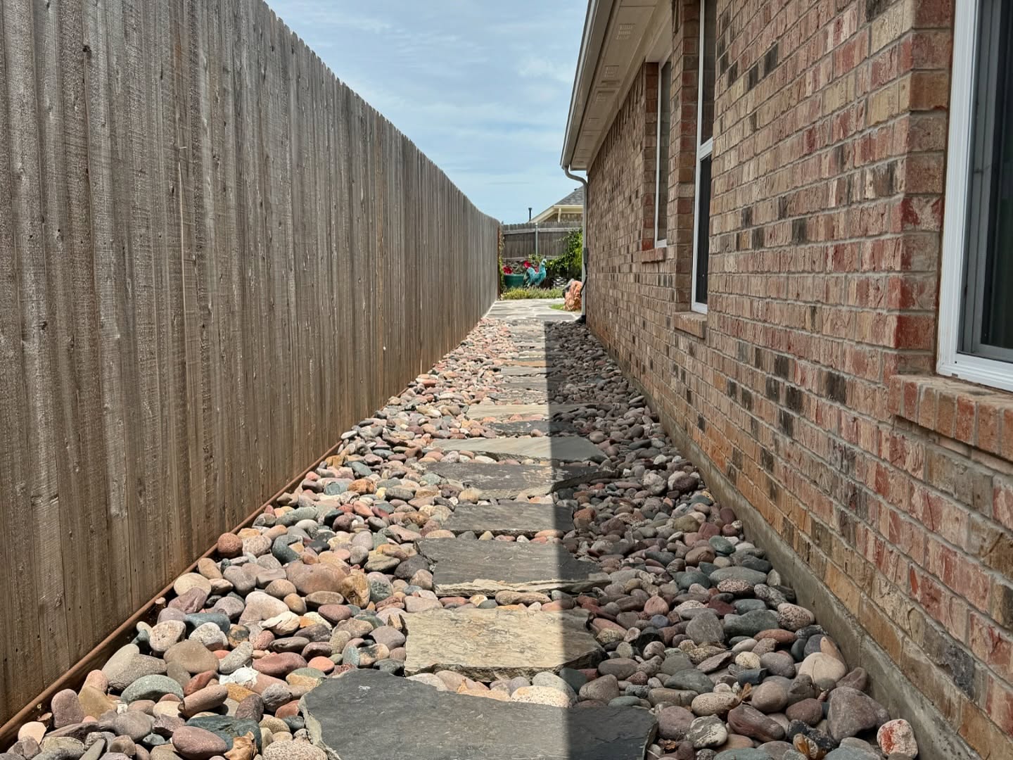 Flagstone walkways create a functional and visually striking element in your landscape design. These natural stone paths provide durability, curb appeal, and a safe, non-slip walking surface for high-traffic areas. With its rugged beauty and resistance to Oklahoma’s harsh weather patterns, flagstone is an ideal choice for long-lasting paths that blend seamlessly with lawns, garden beds, patios, or entryways. Each installation is unique, shaped and placed to complement the overall design of your yard. Proper base preparation and joint stabilization ensure your walkway holds up through seasonal changes without shifting or cracking.